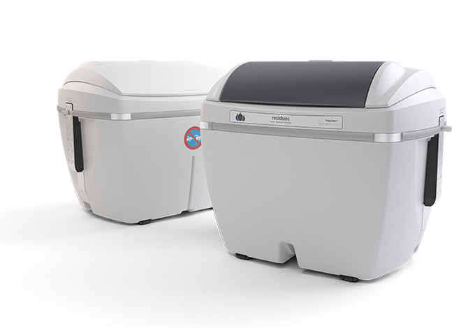 • La suciedad a la que se exponen los contenedores es muy alta, por lo que el Big.Bin 2.9 se ha diseñado con unas formas suaves y sin huecos con una doble función: proteger los mecanismos internos y facilitar la limpieza.
